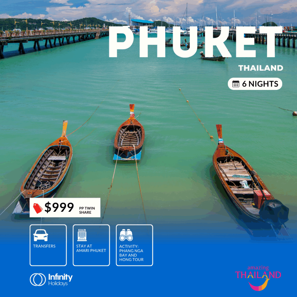 6 nights at the Amari Phuket with Phang Nga Bay and Hong Tour, PLUS airport transfers.